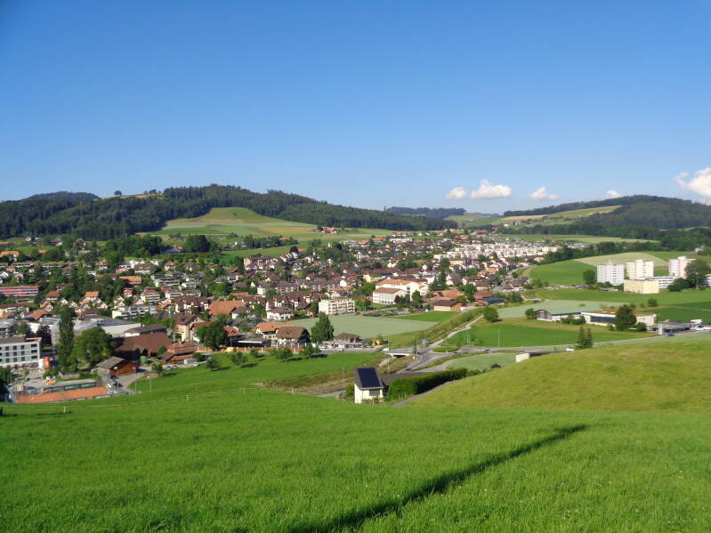 Das Quartier und damit auch das Dorfbild von Worb hat sich in den letzten 50 - 100 Jahren stark verändert. Die Lindhalde, besteht auf den alten Bildern lediglich aus Feldern und einzelnen Häusern. (Bildquelle Archiv A. Hahn Worb)